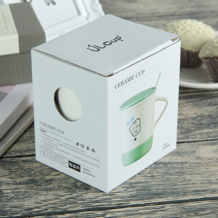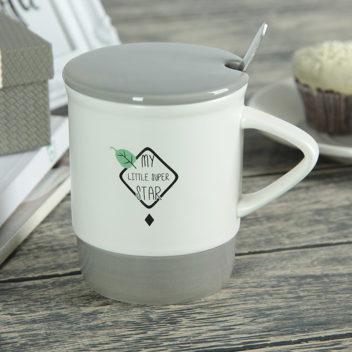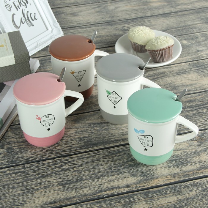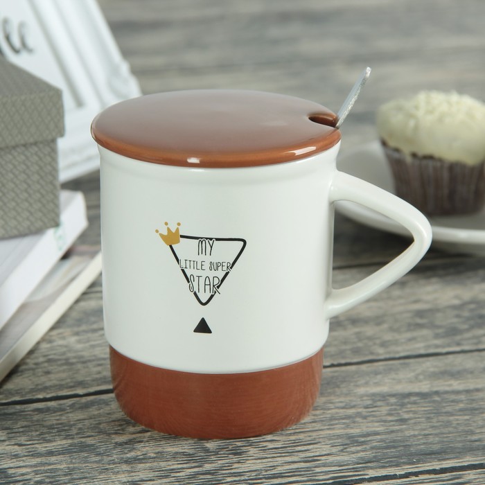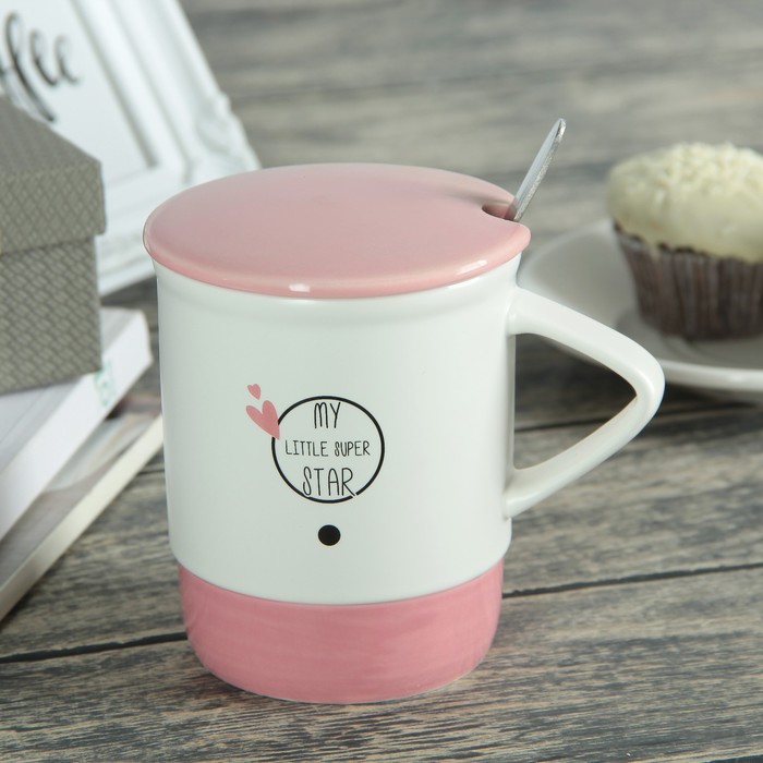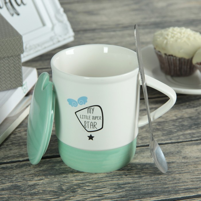 Кружка 360 мл "Супер звезда", с керамической крышкой и ложкой, цвет МИКС