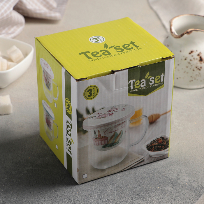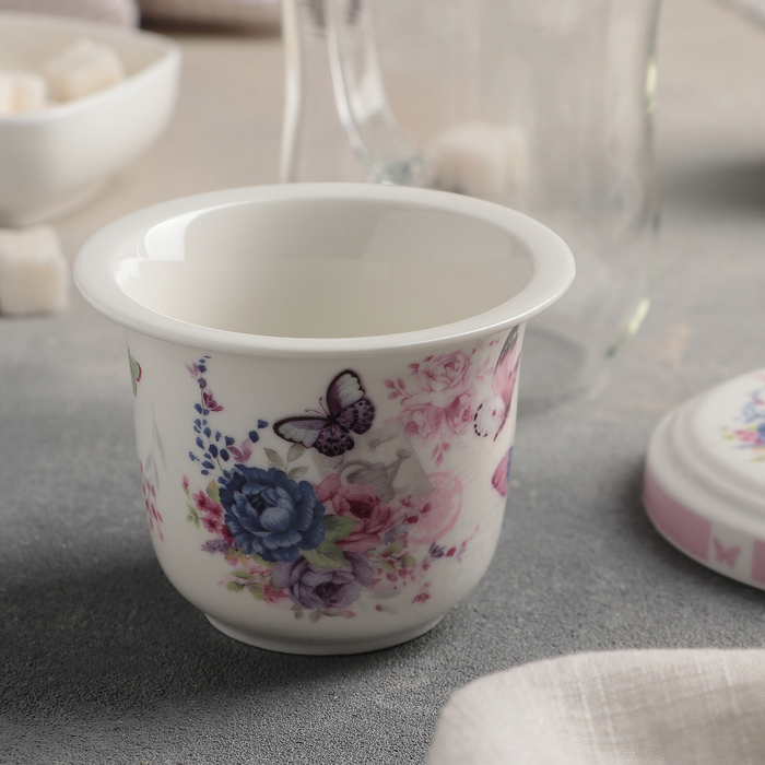 Кружка 400 мл "Бабочки", с керамическим ситом и крышкой