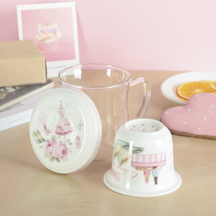 Кружка 400 мл "Мисс", с керамическим ситом и крышкой