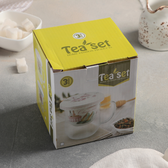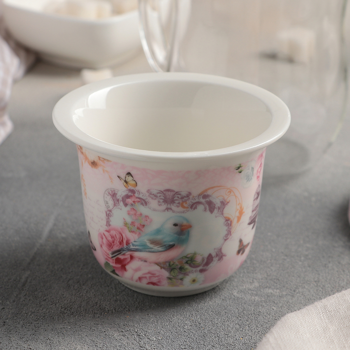 Кружка 400 мл "Птички", с керамическим ситом и крышкой