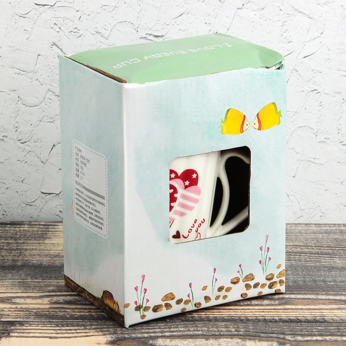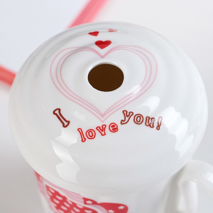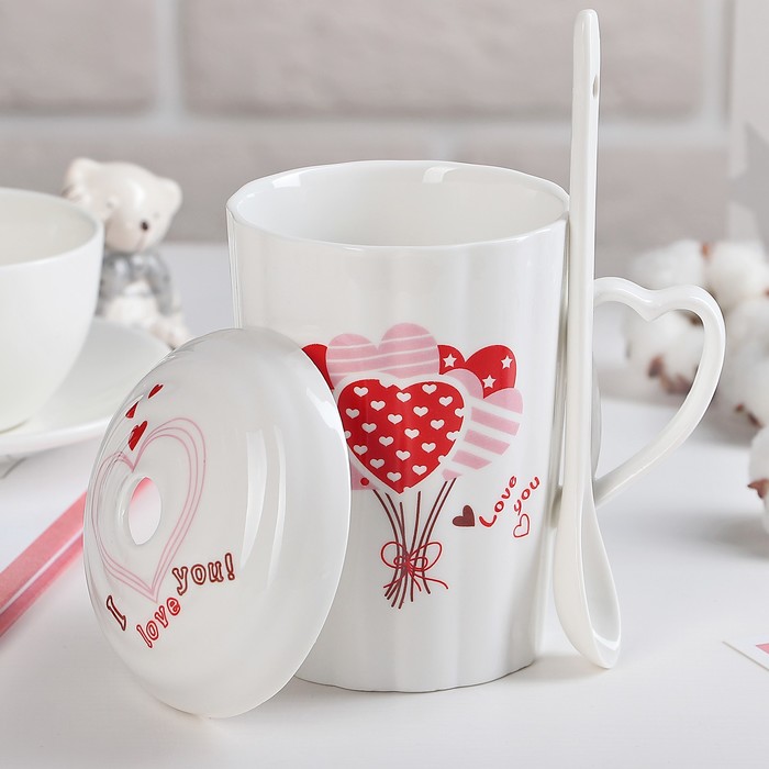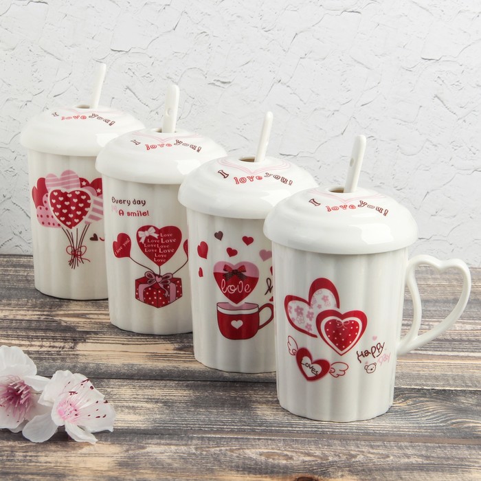 Кружка 400 мл "Валентинка", с керамической крышкой и ложкой, цвета МИКС