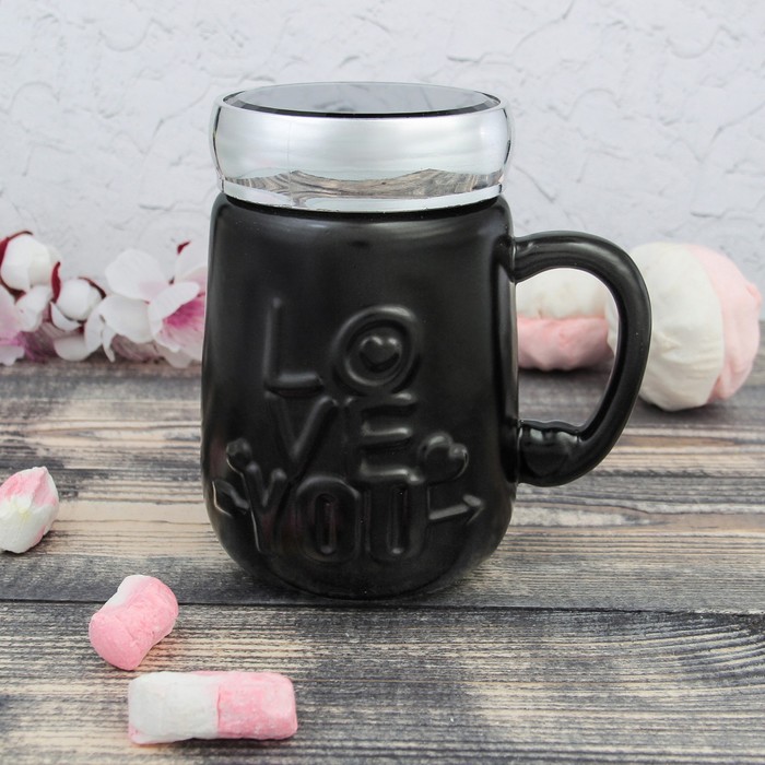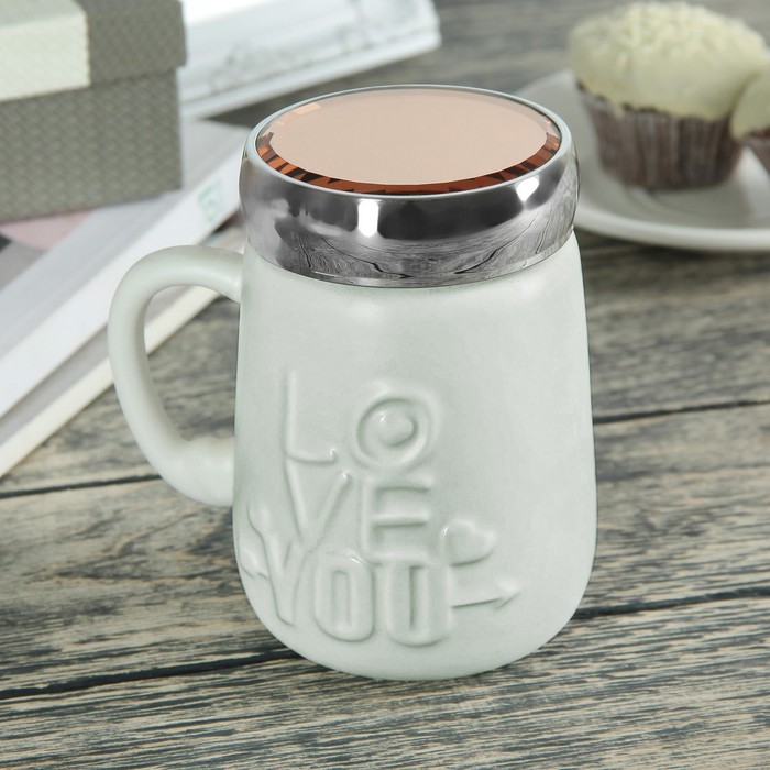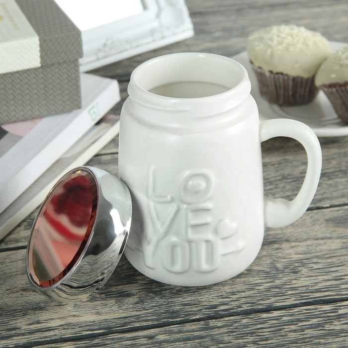 Кружка 500 мл "Люблю тебя", с крышкой-зеркалом, цвета МИКС