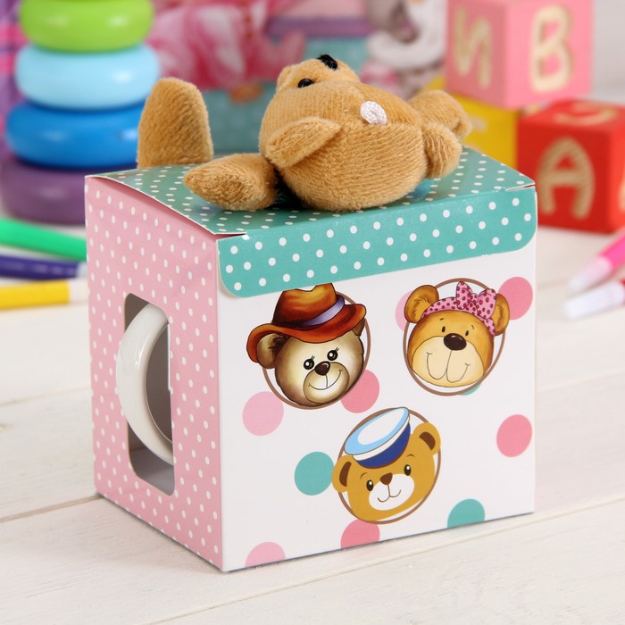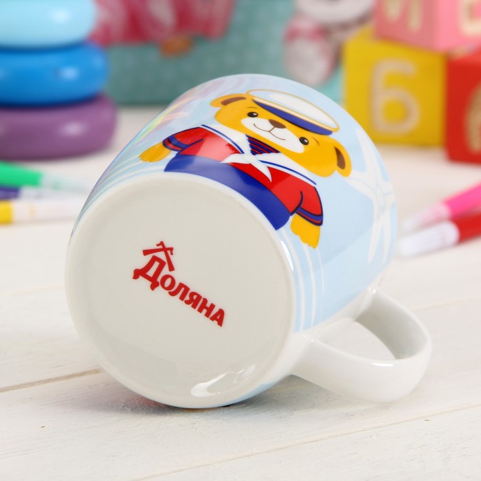 Кружка детская 280 мл в подарочной коробке с игрушкой "Мишка-моряк"