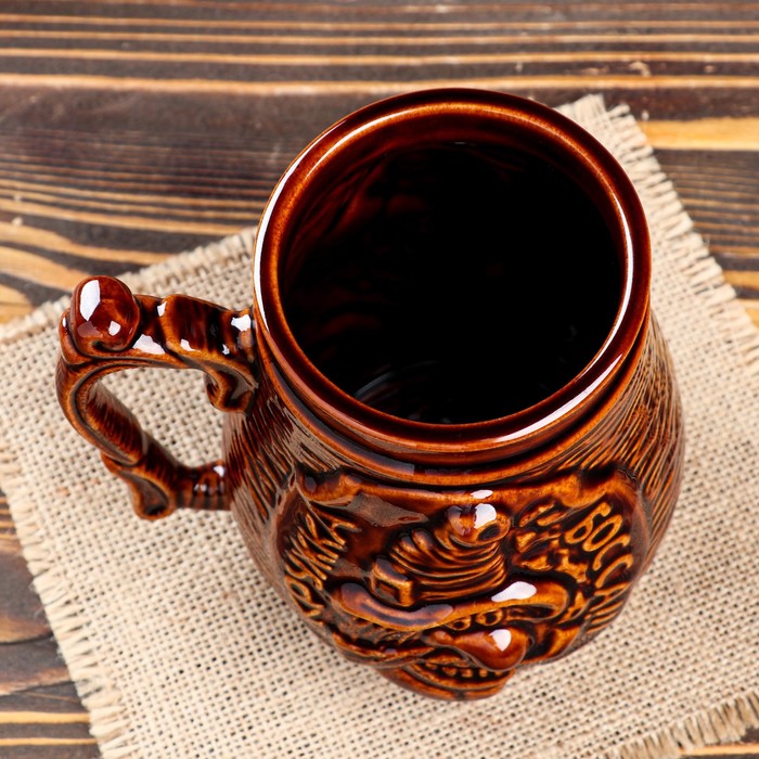 Такая кружка для пива отлично подходит для хмельных напитков. Благодаря термоизолирующим свойствам керамическое изделие надолго сохранит прохладу содержимого.