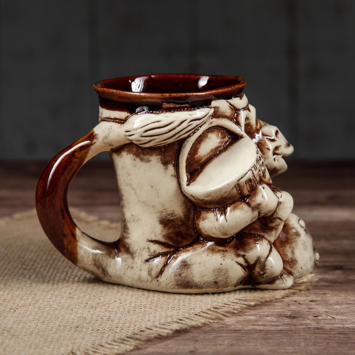 Такая кружка для пива выполнена из керамики. Изделие выдержит высокую и низкую температуру, надолго сохранит чай горячим, а остуженные напитки холодными.