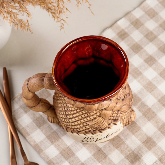 Такая кружка для пива отлично подходит для хмельных напитков. Благодаря термоизолирующим свойствам керамическое изделие надолго сохранит прохладу содержимого.