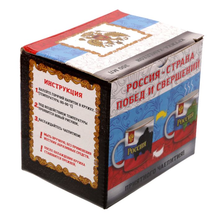 На первый взгляд - это обычная керамическая кружка, но она таит в себе маленький секрет. Стоит только налить любимый горячий напиток, как кружка моментально начнет менять свой рисунок. Такой эффект достигается, благодаря специальным термочувствительным краскам, которые при нагревании становятся прозрачными.