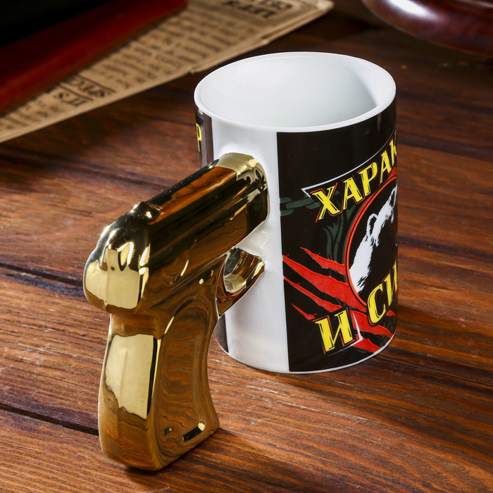 Кружка керамика пистолет "Характер и сила" 320 мл