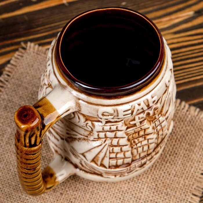 Кружка пивная 1 л "Фрегат" глазурь