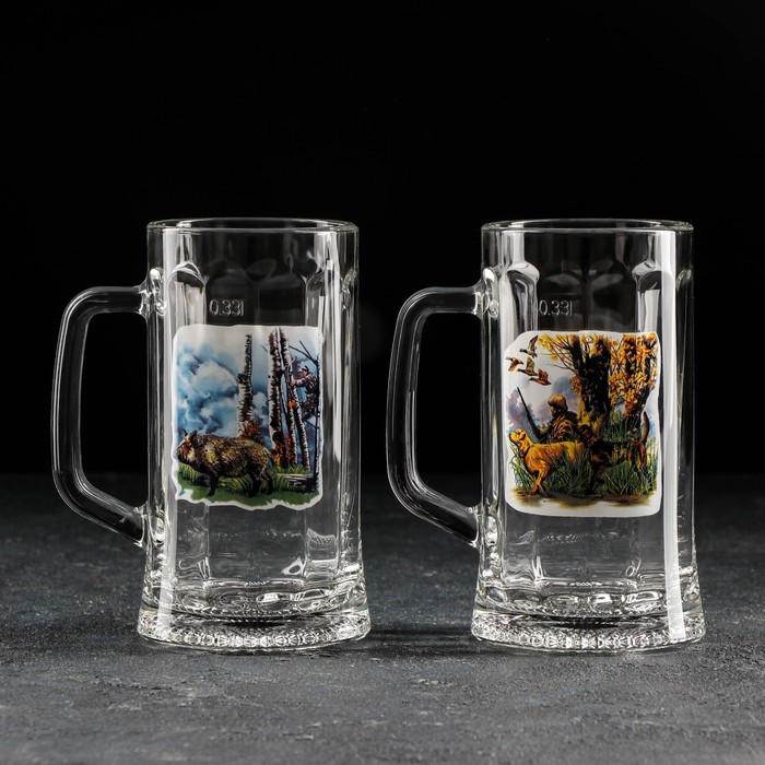 Кружка пивная 330 мл "Охота-рыбалка", рисунок МИКС