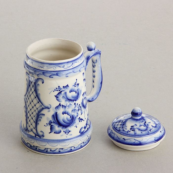 Кружка пивная с крышкой «Цветы», гжель, кобальт