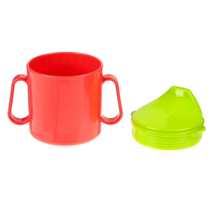 Кружка-поильник с твёрдым носиком, 180 мл, цвет красный/зелёный