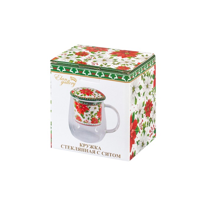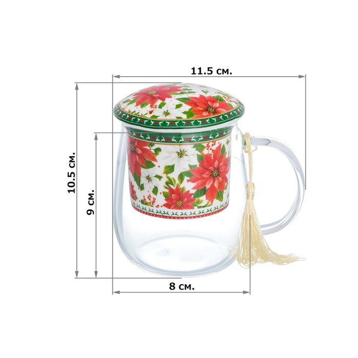 Кружка с фарфоровым ситом и крышкой "Пуансеттия" 11,5×8×10,5 см, 400 мл, подарочная упаковка 39499