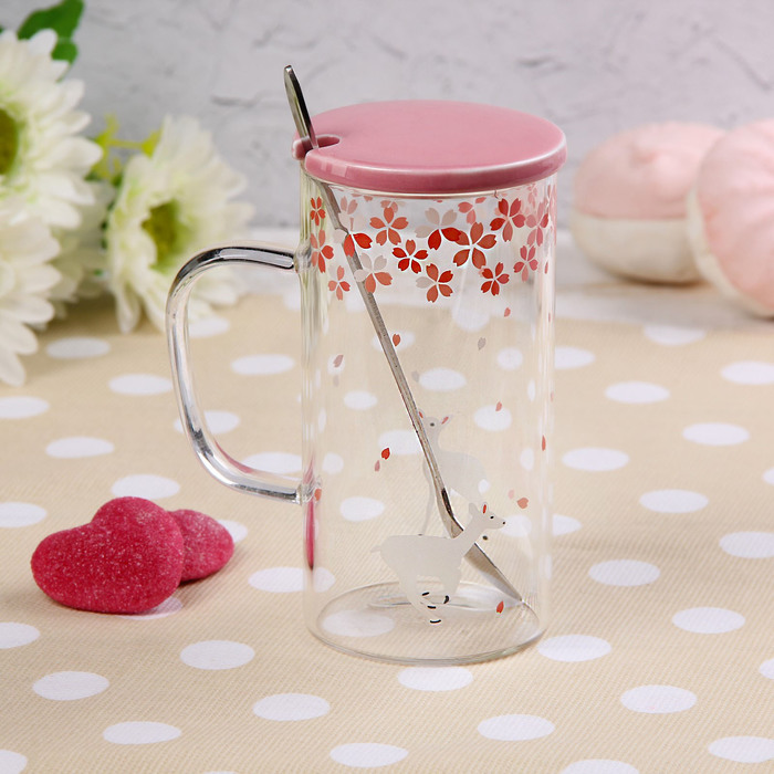 Кружка с керамической крышкой и ложкой 350 мл "Осень", цвета МИКС