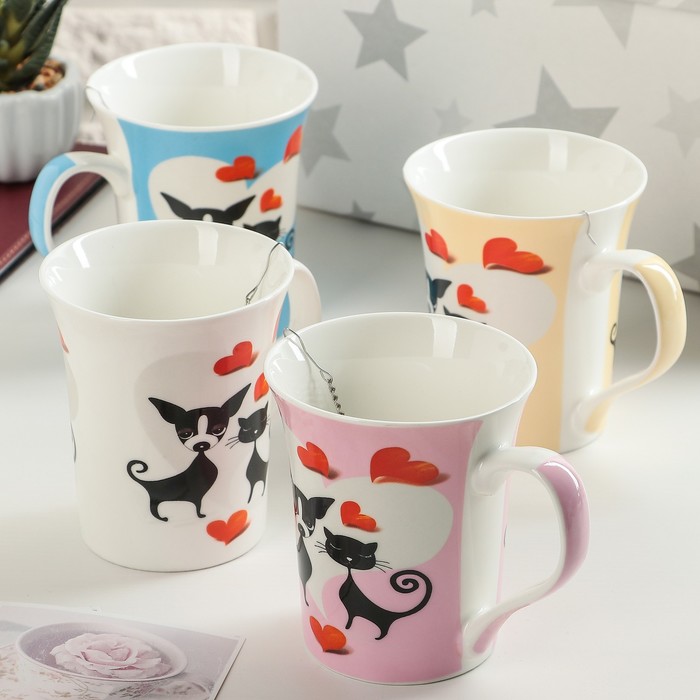 Кружка с ситом 300 мл "Кот и пес", цвет МИКС