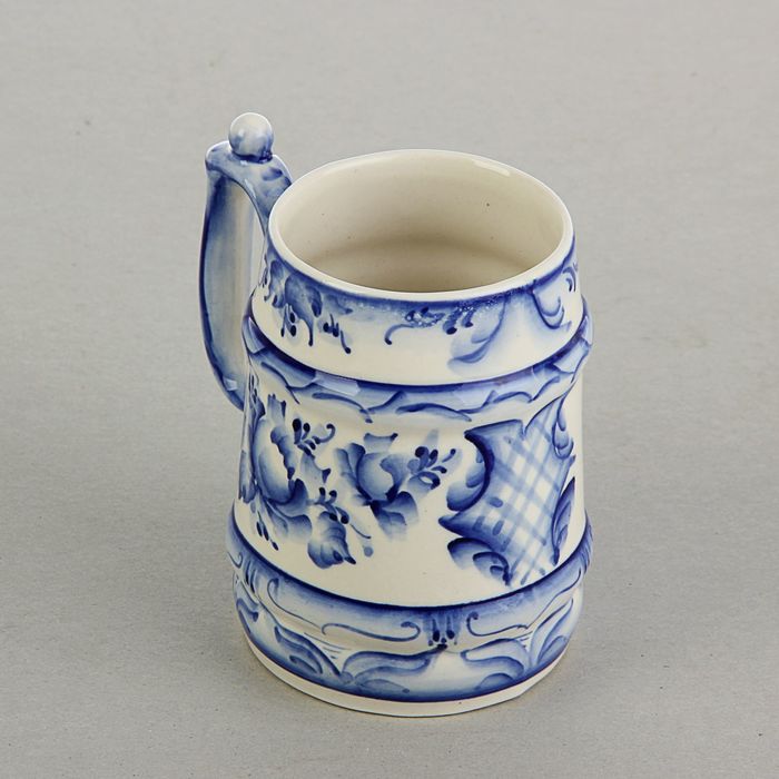 Собственный стиль Гжели — синие и голубые узоры, растительный орнамент и витиеватые украшения на белом фоне. Роспись производится кобальтом, который в ходе технологического процесса приобретает характерный для Гжели синий цвет. Мастера расписывают каждое изделие только вручную. В каждом предмете легко и непринуждённо варьируются букеты и гирлянды, вводятся геометрические пояски, похожие на вязаное кружево, изделия украшает декоративная лепнина, изображаются пейзажные сюжеты.
