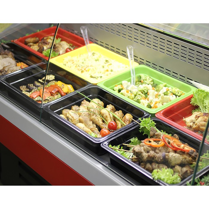 Крышка к гастроемкости 1/9, черная оборудована специальными цветными клипсами, которые позволяют быстро определять содержимое гастроёмкости. Условные обозначения: