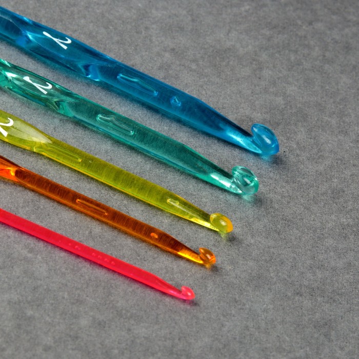 Крючки для вязания пластиковые, d=3-7мм, 15см, 5шт, цвет МИКС