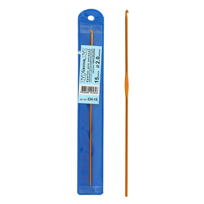 Крючок для вязания металлический, d=2мм, 15см, цвет жёлтый
