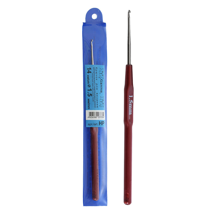 Крючок для вязания металлический, с пластиковой ручкой, d=1,5мм, 14см