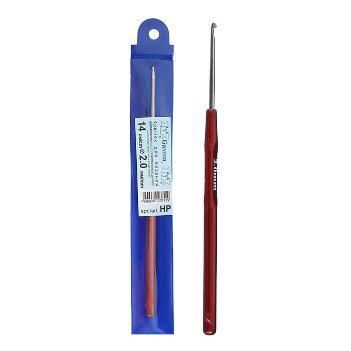 Крючок для вязания металлический, с пластиковой ручкой, d=2мм, 14см