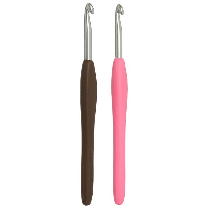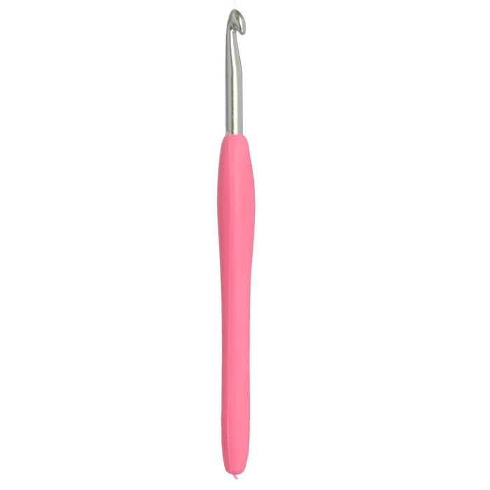 Крючок для вязания металлический, с силиконовой ручкой, d=5,5мм, 14см, цвет МИКС