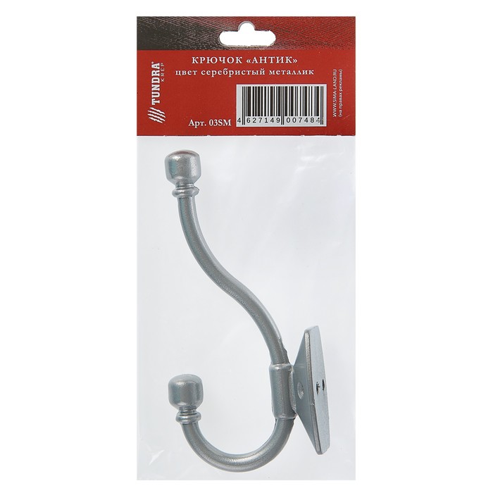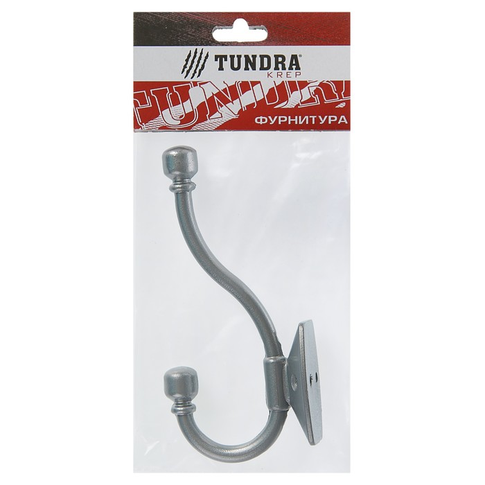 Крючок мебельный двухрожковый TUNDRA krep, КМ03SM, цвет серебристый металлик