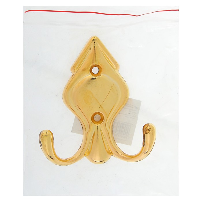 Крючок мебельный, КМ215GP, двухрожковый, цвет золото