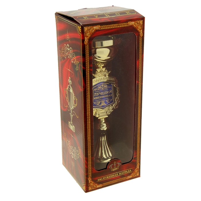 Кубок "Поздравляем. Лучший именинник" упакован в яркую подарочную коробочку с тёплыми словами и PVC вставкой, которая позволяет сразу рассмотреть изделие.