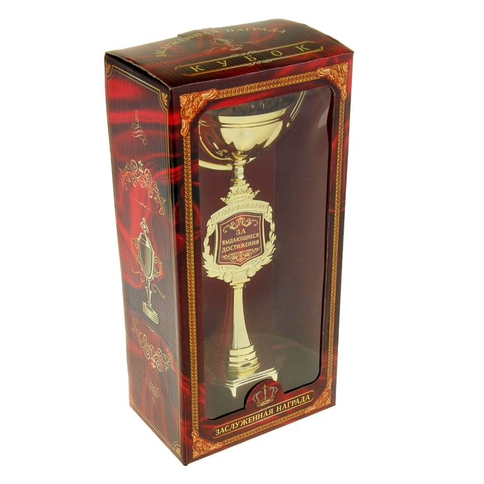 Кубок "Поздравляем. За выдающиеся достижения" комплектуется яркой подарочной упаковкой, которая позволит преподнести приз в особо запоминающейся форме.