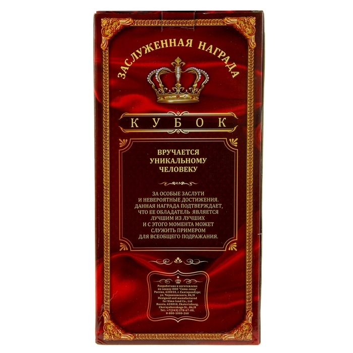 Кубок - это подарок, который станет не только приятной памятью на долгие годы, но и предметом гордости для будущего владельца!