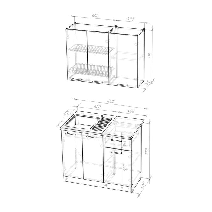 Кухонная мойка, стеновая панель, решётка для посудосушителя в комплект не входят.