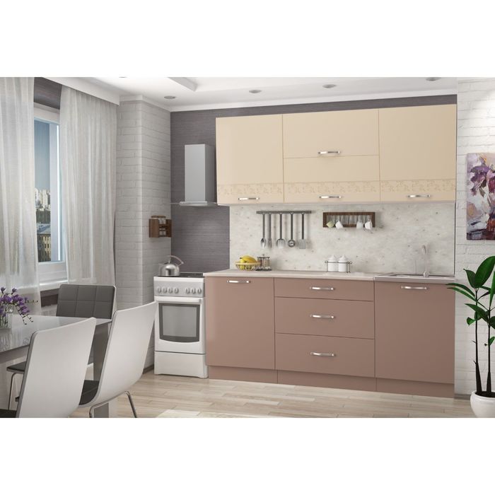 Кухонный гарнитур Латте, 2000 мм, цвет Ваниль глянец/Кофе с молоком глянец