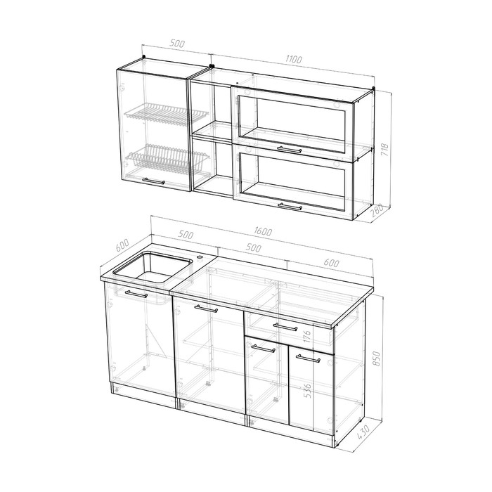 Кухонный гарнитур Оксана стандарт, 1600 мм