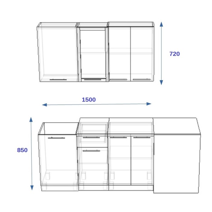 Кухонный гарнитур прямой Акация 10, 1500 мм, цвет Ваниль/Венге
