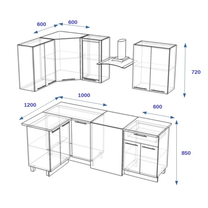 Кухонный гарнитур угловой Акация 5, 1600 х 1200 мм, цвет Лайм