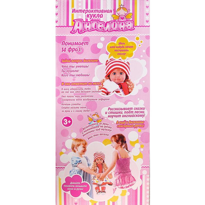 Кукла интерактивная "Ангелина-1", понимает 14 фраз, рассказывает сказки, стихи, открывает и закрывает глаза, работает от батареек