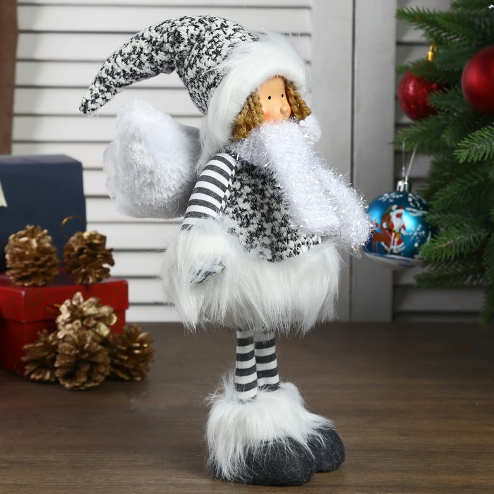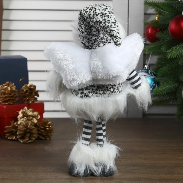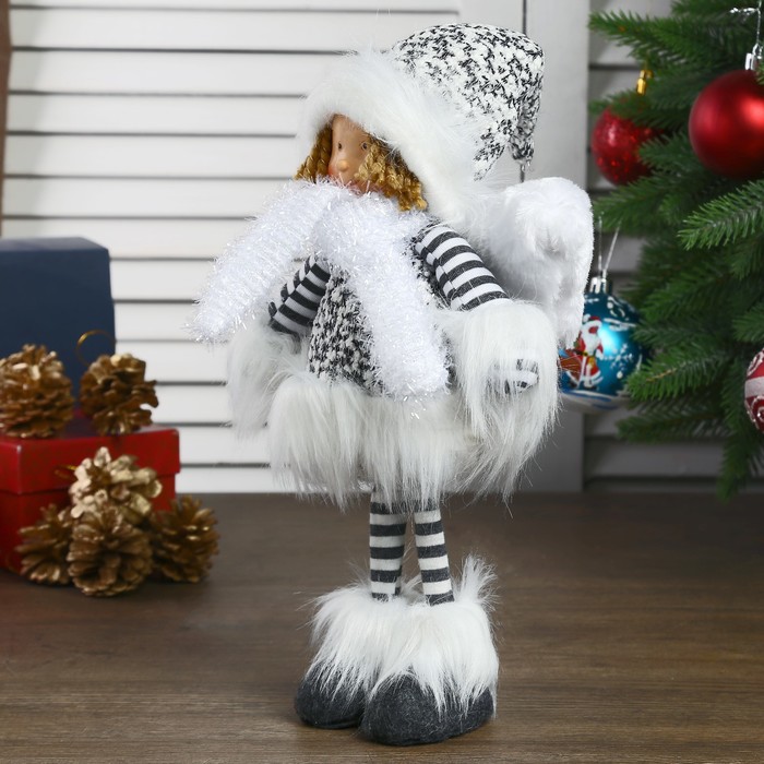 Кукла интерьерная "Ангел-девочка в чёрно-белой шубке стоит" 37 см
