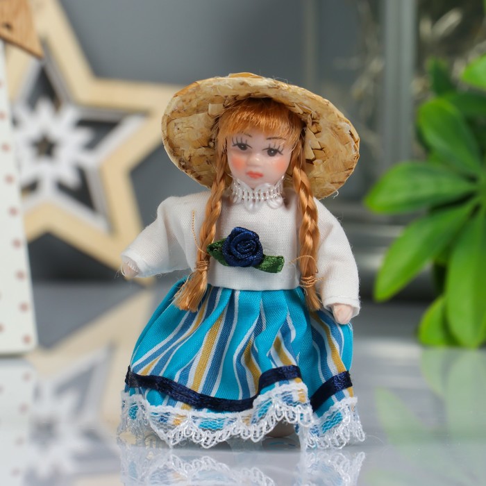 Кукла коллекционная керамика "Малышка в соломенной шляпке" 9 см МИКС