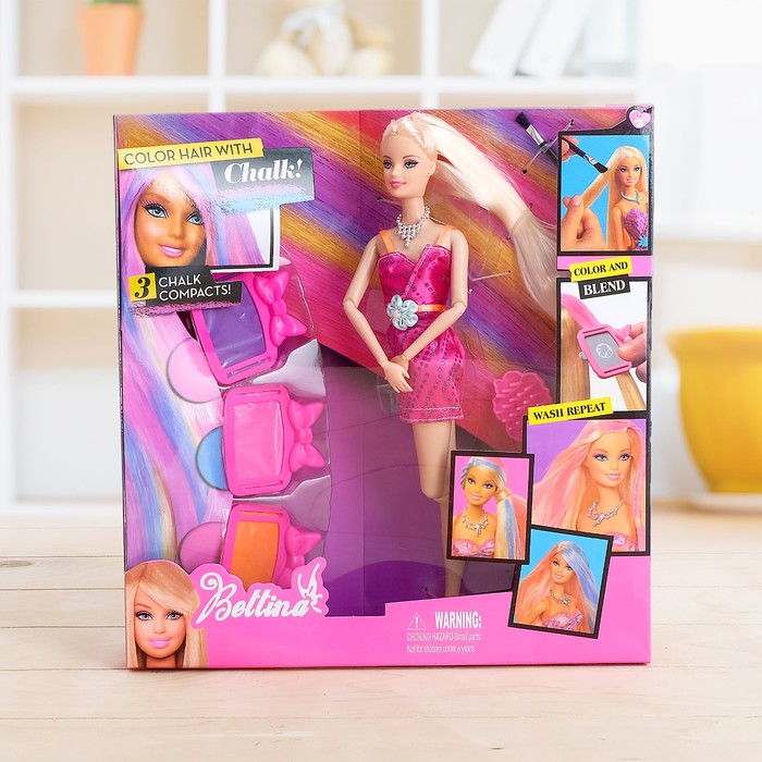 Кукла модель "Оля" с мелками для окрашивания волос и инструментами