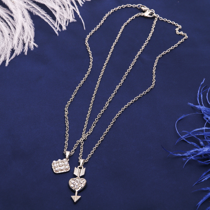 Ни один стиляга не будет выглядеть современно без искусно подобранных украшений, которые завершат его образ! Бижутерия — это современная недорогая альтернатива изделиям из золота и прочих драгоценных металлов. Кулон "Двойной" стрела амура, цвет белый в серебре — это то, что добавит вам шарма!