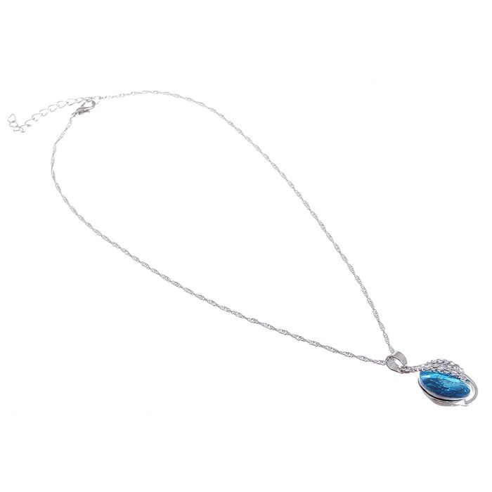Кулон "Капелька с листочком", цвет голубой в серебре