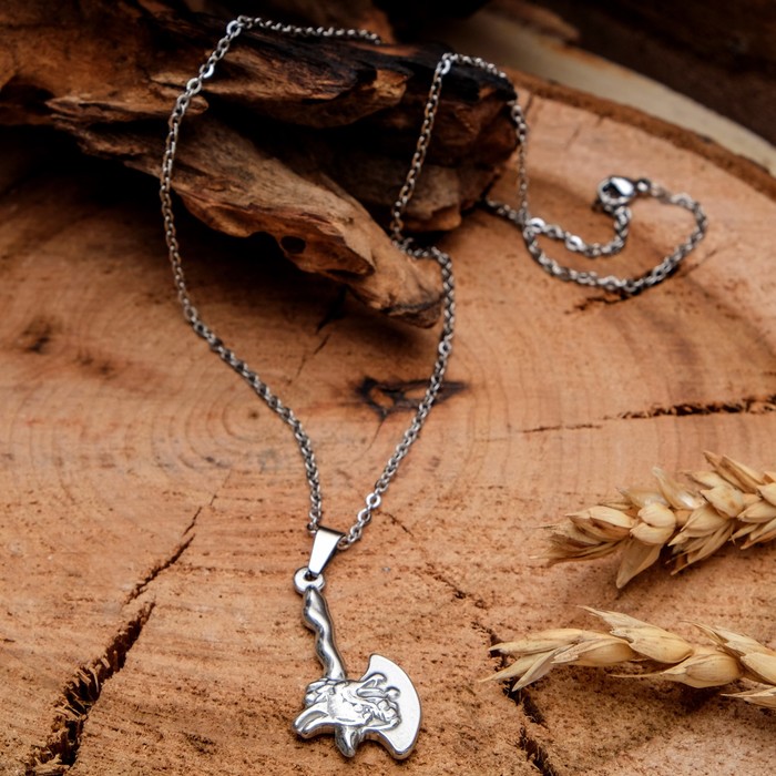 Кулон мужской "Стальной" секира с драконом, цвет серебро, 45 см