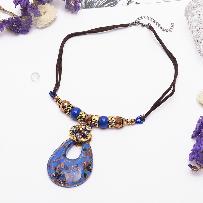 Ни один стиляга не будет выглядеть современно без искусно подобранных украшений, которые завершат его образ! Бижутерия — это современная недорогая альтернатива изделиям из золота и прочих драгоценных металлов. Кулон восход "Муранское стекло" капля, цвет синий, 45 см — это то, что добавит вам шарма!