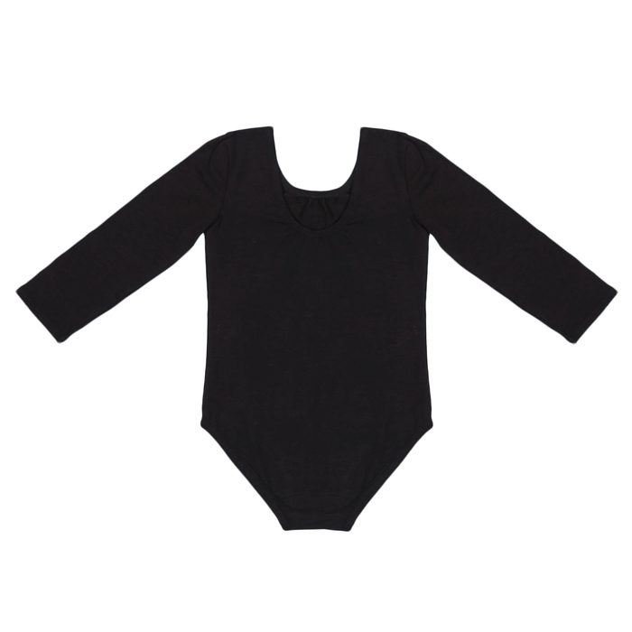 Купальник-боди гимнастический, х/б, рукав 3/4, размер 32, цвет чёрный