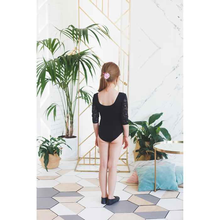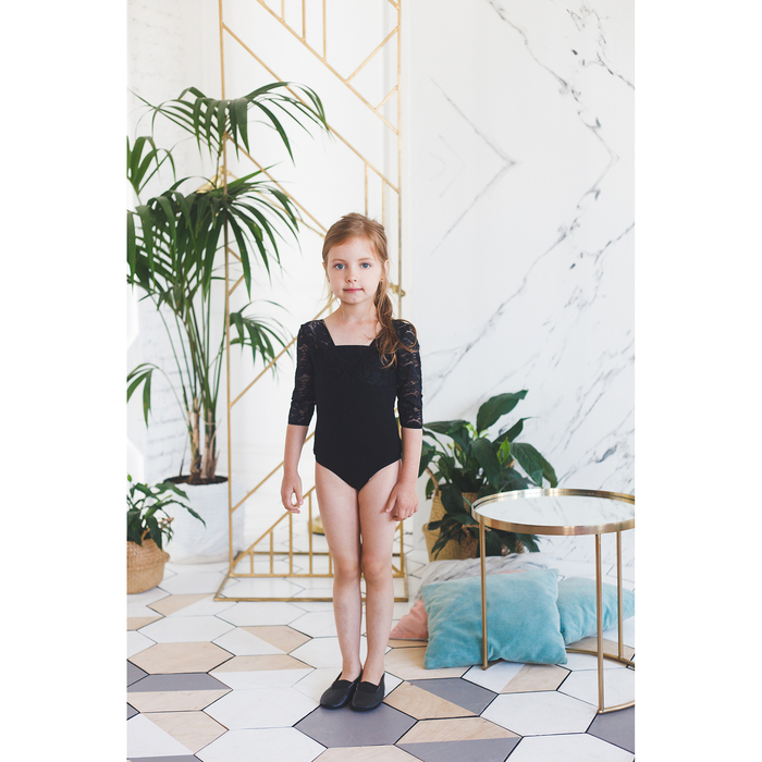 Купальник гимнастический Кружево 4, болеро, рукав 3/4, размер 40, цвет чёрный