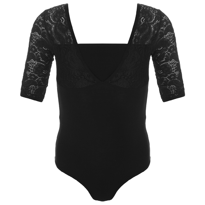 Купальник гимнастический Кружево 4, болеро, рукав 3/4, размер 42, цвет чёрный