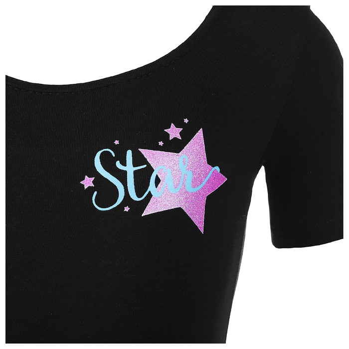 Купальник гимнастический Star х/б, короткий рукав, размер 40, цвет чёрный