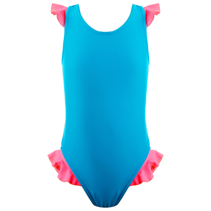 Купальник подходит для регулярных тренировок в бассейне. Изделие из эластичной и плотной ткани хорошо облегает тело спортсмена и улучшает гидродинамические свойства. Купальник имеет широкие бретели, декоративный фигурный вырез на спинке и отделку рюшами, которые делают образ нежным и игривым.