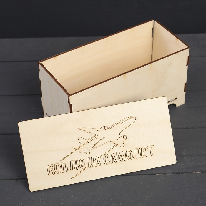 Купюрница для декора "Коплю на самолет" из фанеры, набор 7 деталей 18х9,5х8 см